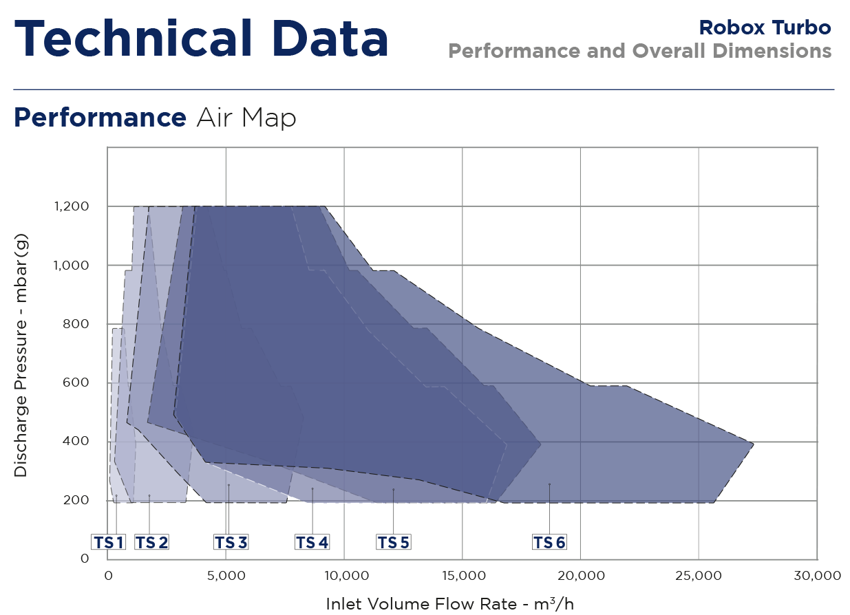 Rad Robox Turbo je schopný dosiahnuť až 1 200 mbar(g) s maximálnym prietokom 26 500 m3/h.