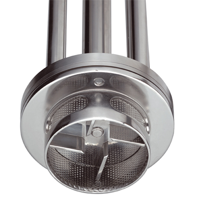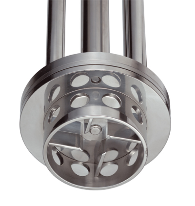The high speed and adjusted tolerances between the rotor and the stator result in high suction potential, the product is suctioned from the bottom of the tank and driven to the centre of the head.