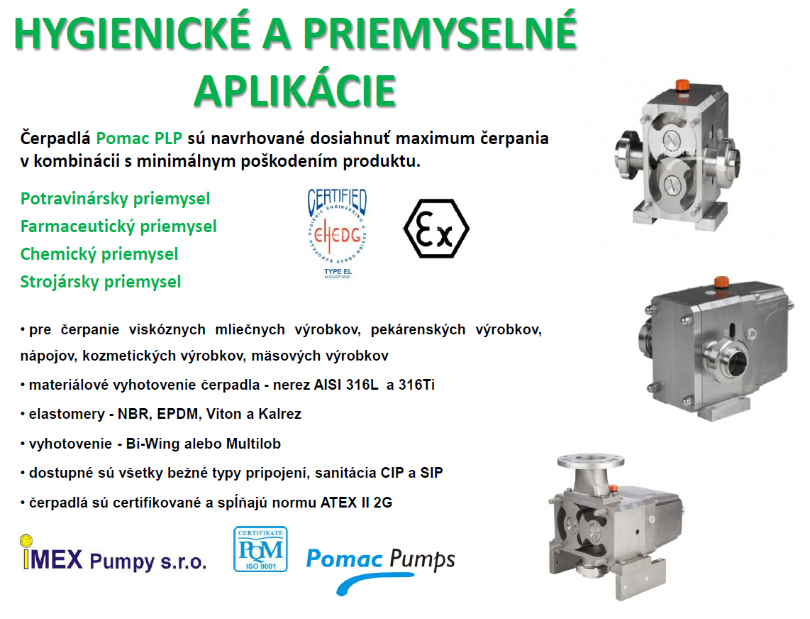 Hygienické a priemyselné aplikácie čerpadiel Pomac PLP