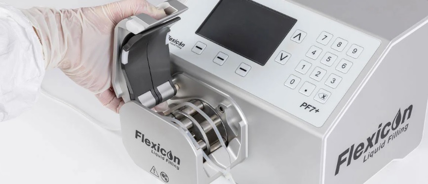 Stolové plniace stroje Flexicon eliminujú potenciál krížovej kontaminácie, pretože s kvapalinou prichádza do kontaktu iba vnútorný otvor jednorazovej hadičky.